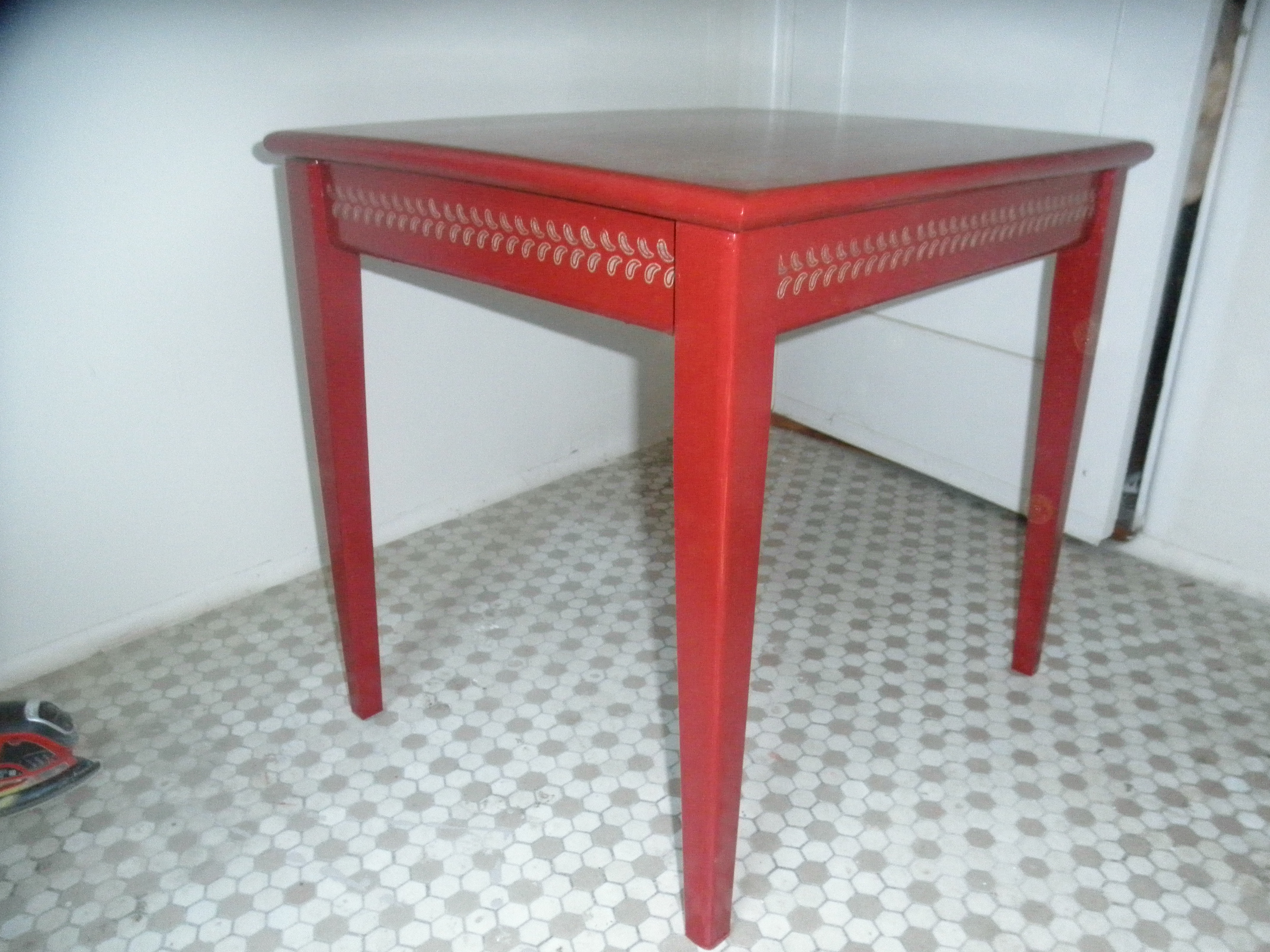 The first piece I flipped. Sorry, there’s no before photo, but it was an ugly white table with green ivy decoration!