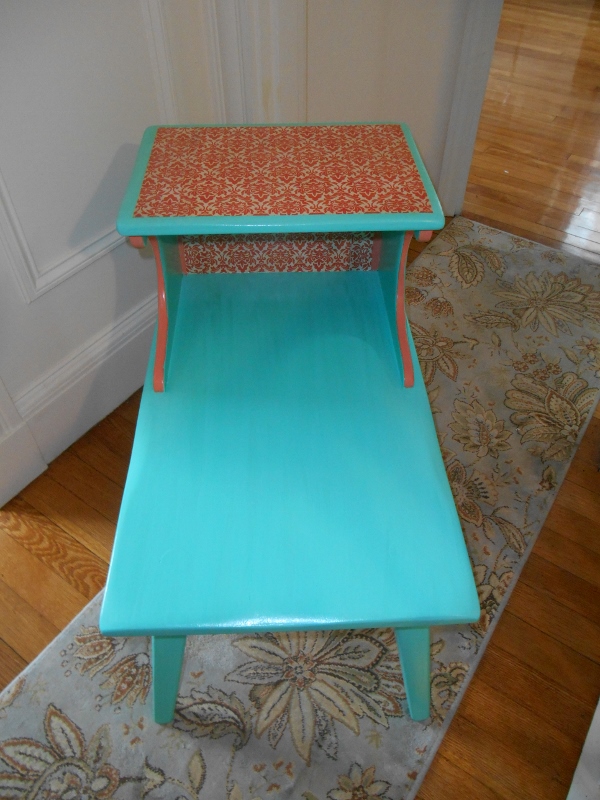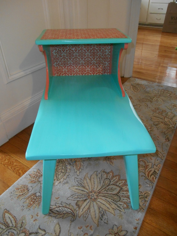 When I find a piece of furniture sometimes it tells me right away what it wants to be. Sometimes, I wait. Sometimes I make a decision and know exactly what I’m going to do, but as I’m sanding, painting, decoupaging, etc., it all changes. Sometimes the piece just says “No. I don’t to be blue with checks, I want to be red with flowers.” I listen. And usually it’s the right decision.